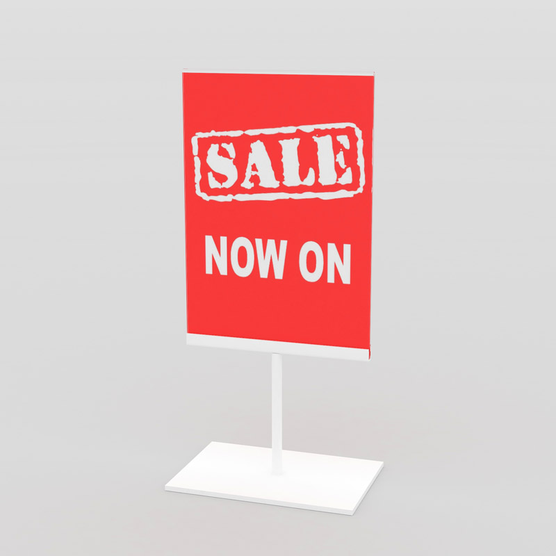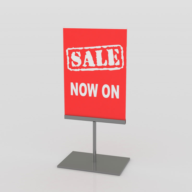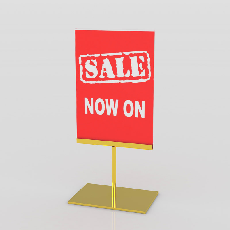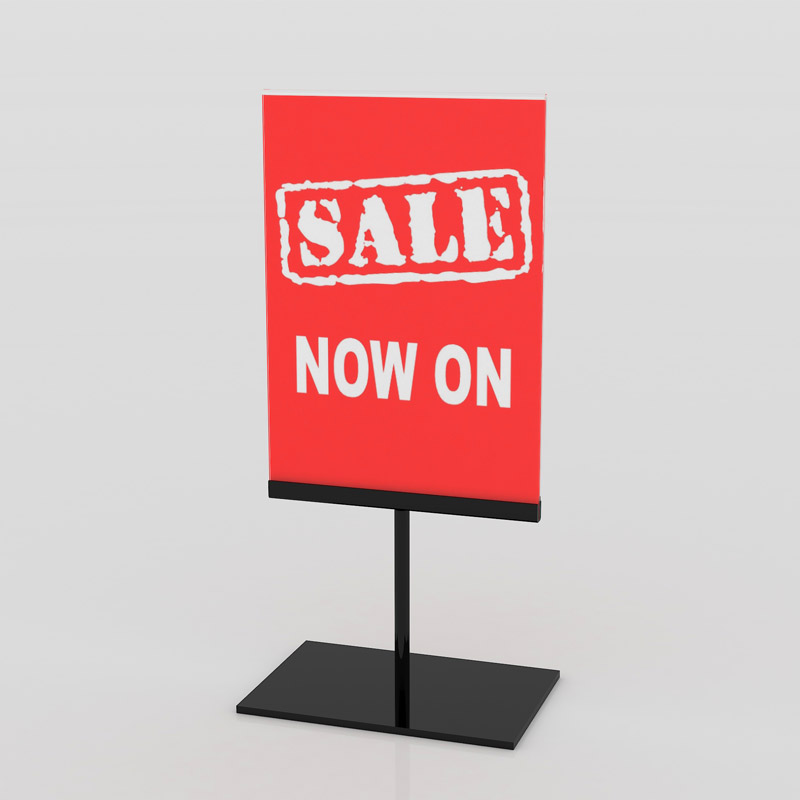 This A4 display sign is made of steel base, foamed PVC sign with printing. Prinited pattern could be customized.