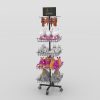 This light weight plush toy rack is with a hook spinner shelf and 4pcs wire grid shelves.It is easy for consumbers to access backpacks on the rack, enabling them to check out the ones that interest them most. Logo printing could be customized.