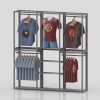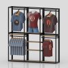 This wall stand rack present jackets, pants, hoodies and so on. Rack is extendable.